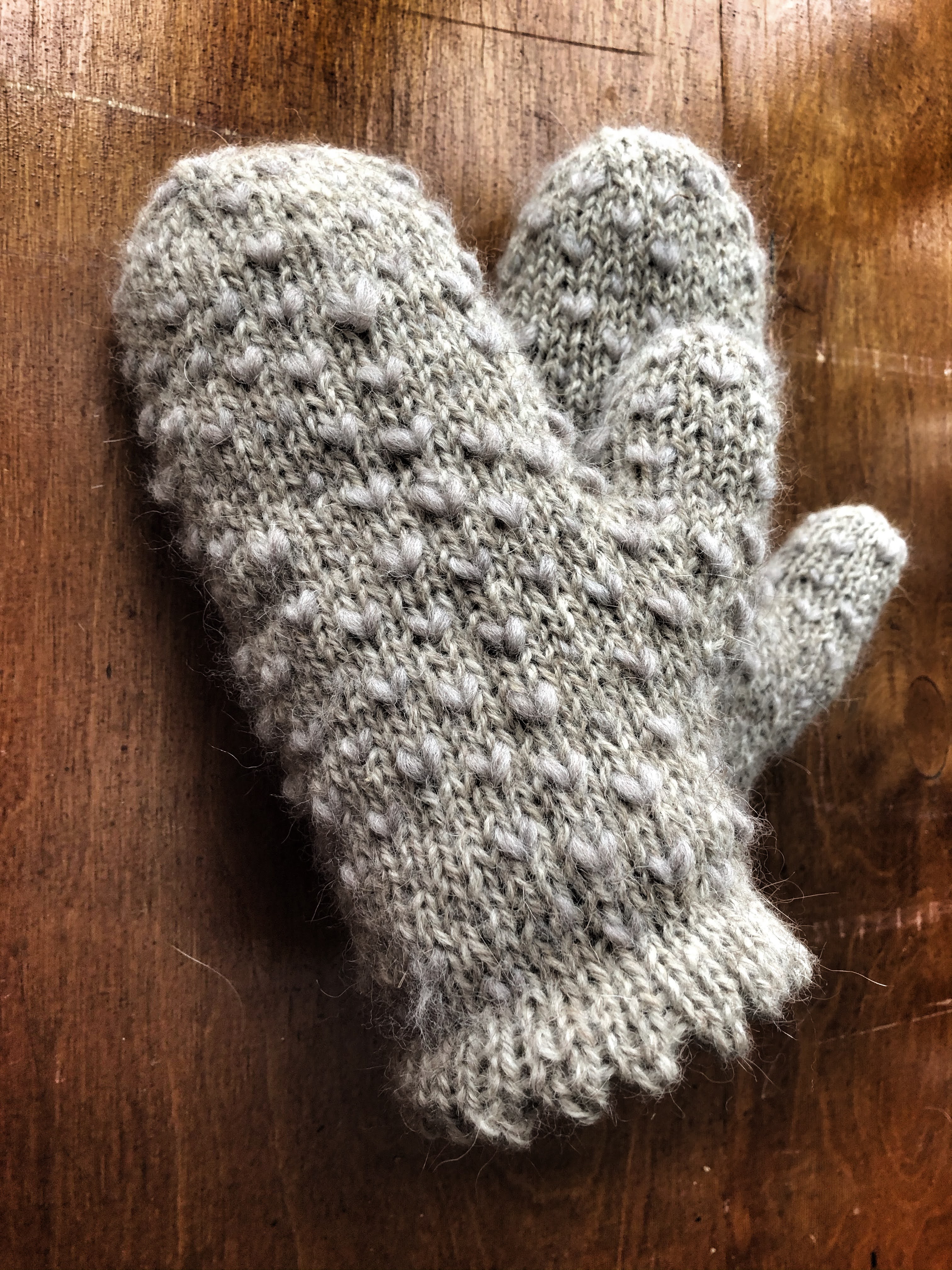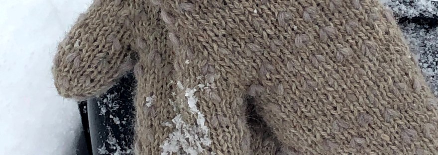 Kerppu-lanka ( kuten sen ristin) ja jäätyneet näppini saivat minut palaamaan lapasmaailmaan. Olinhan jo aiemmin tehnyt vedenkantolapasina tunnettuja vuorellisia lapasia. Päätinkin tehdä tästä langasta samalla metodilla, mutta sillä erolla, että vuoren muodostavat langat ovat samaa villaa, jota käytön huovutustöissäni. Näistä vielä harjasin kuidut auki, joten lapasen vuori on aivan unelmaisen pehmeä ja paksu. Uskon todellakin tehneeni täydelliset, suomalaiset lapaset suomalaiseen talveen.