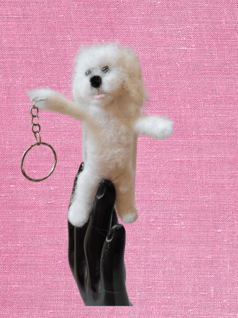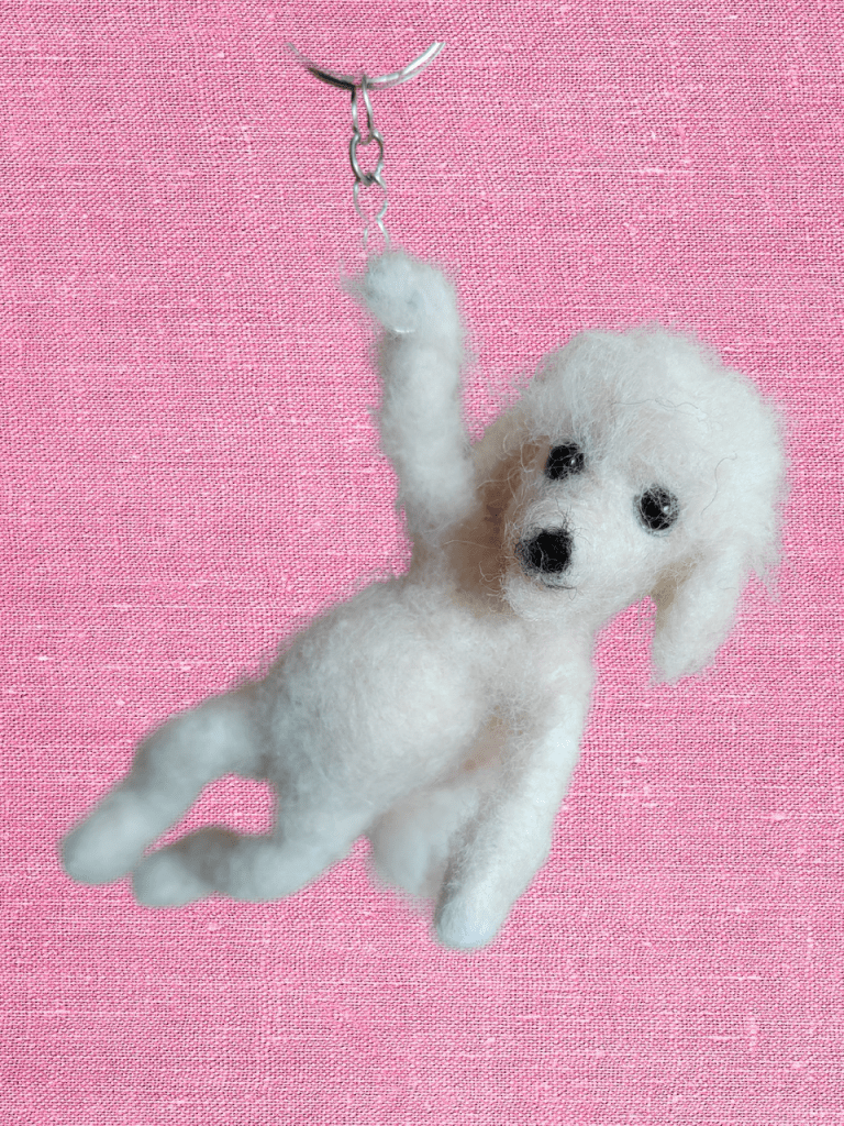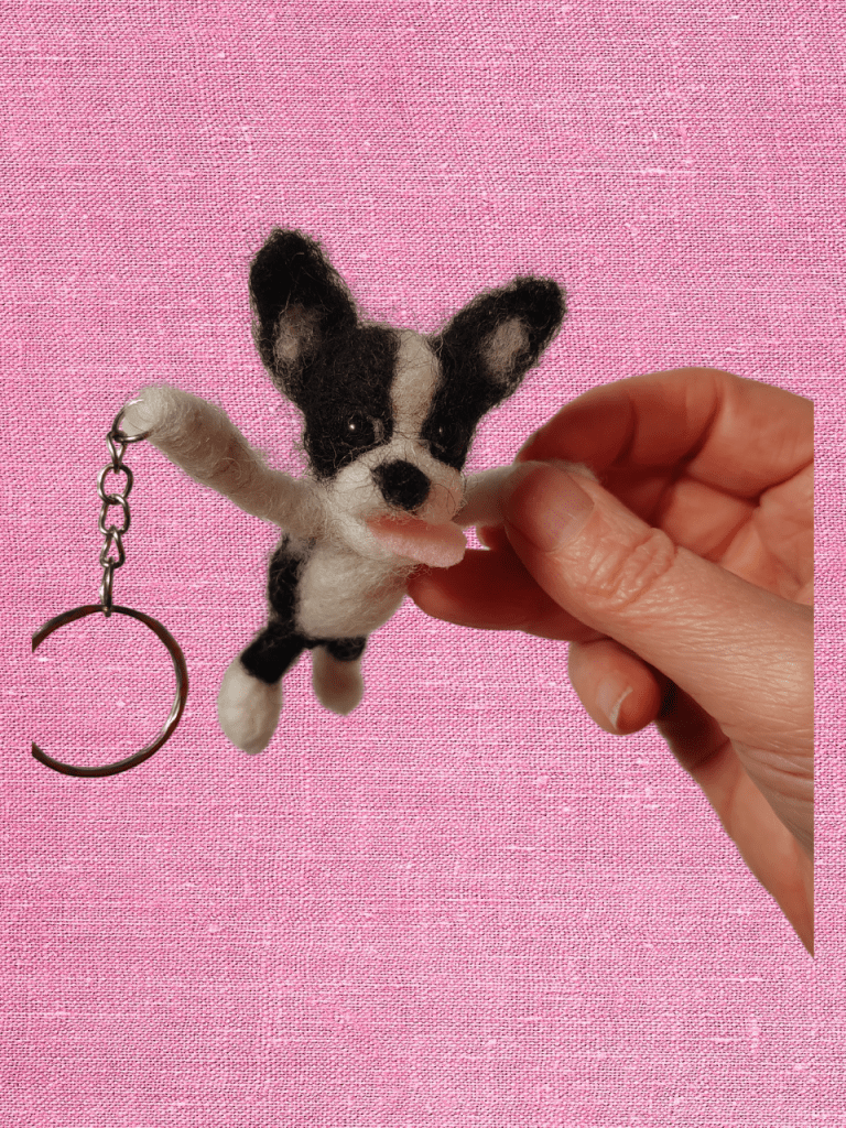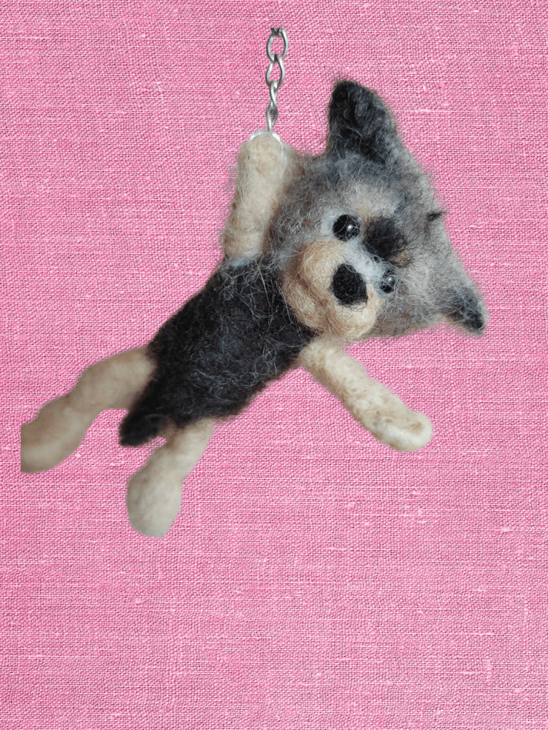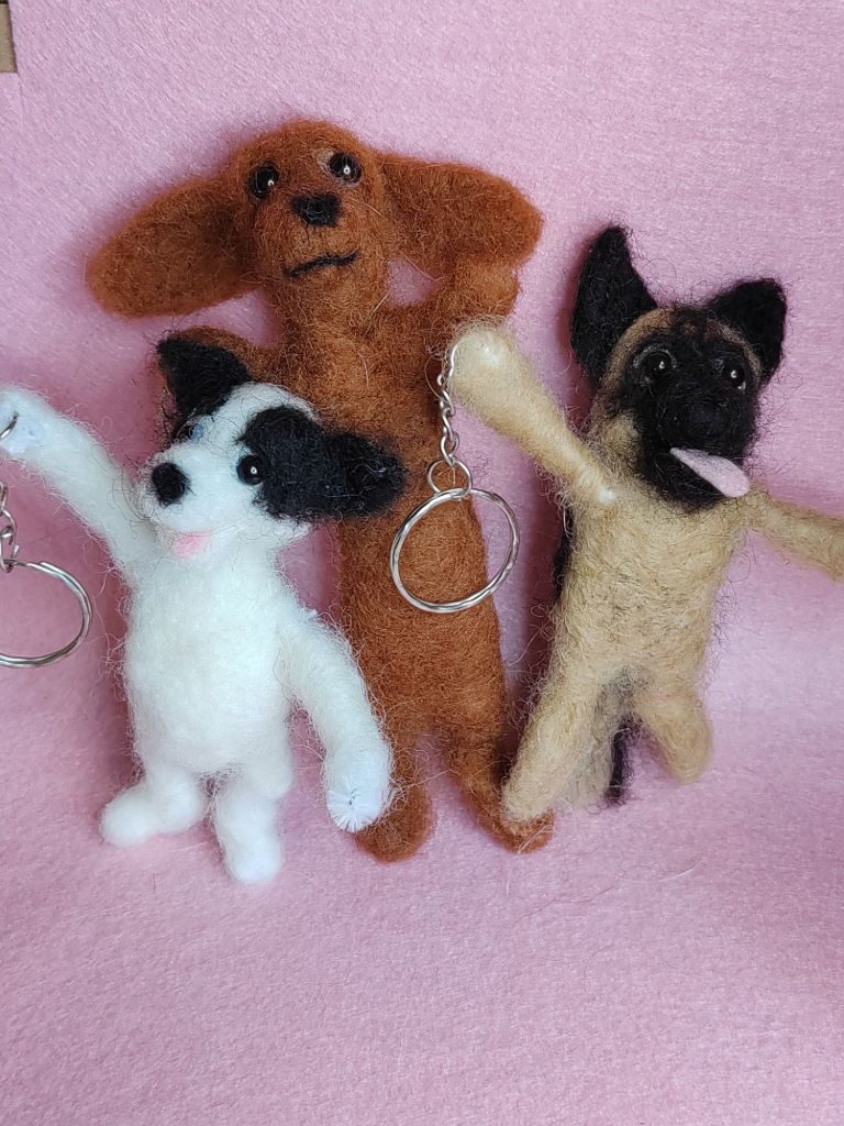 Huovutettu koira, kissa tai muu eläinfiguuri esim avaimenperäksi. Kokoa näillä 8-10cm.